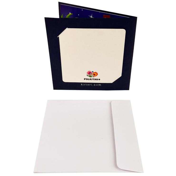 With an envelope and a large card with space for wishes