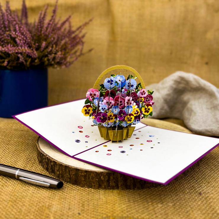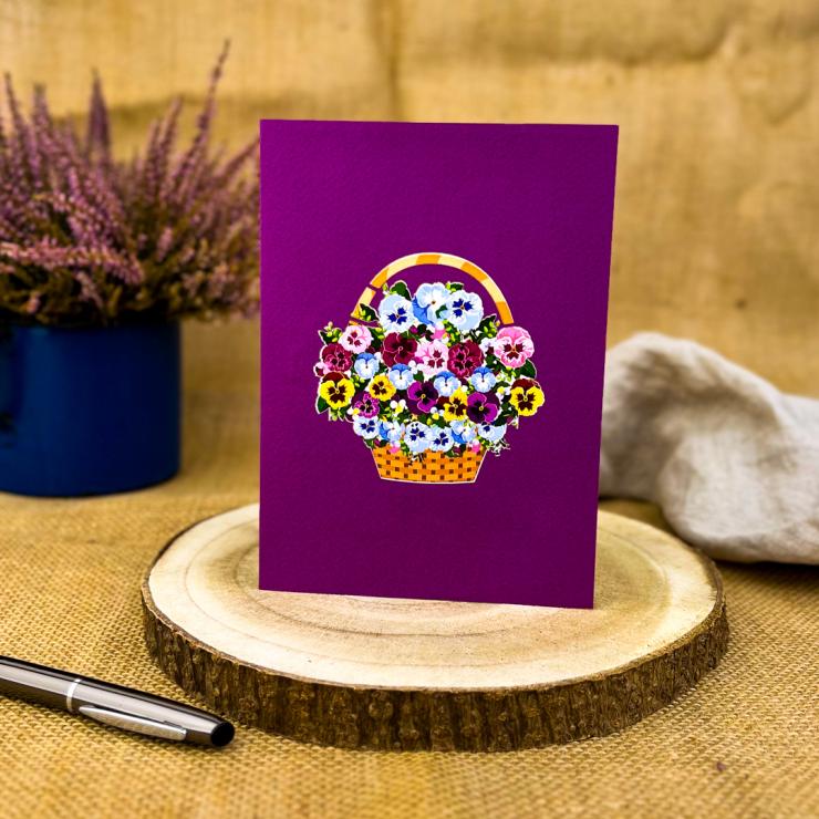 3D Greeting Card - Basket of pansies