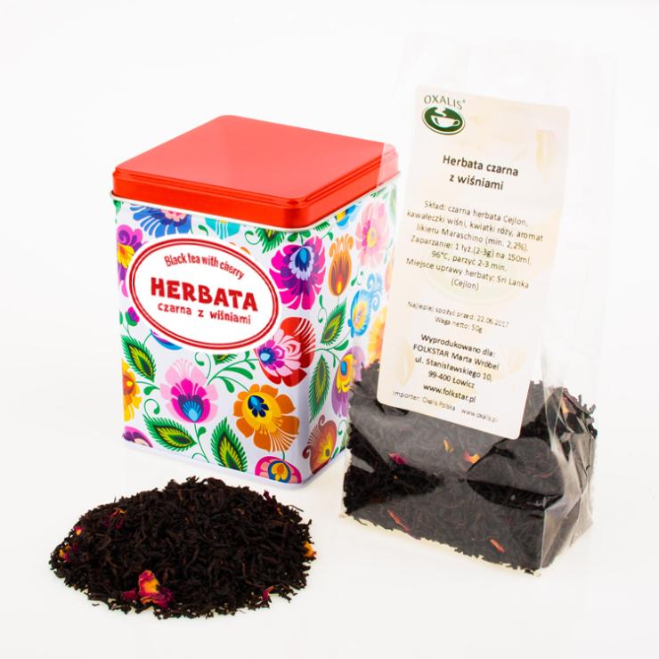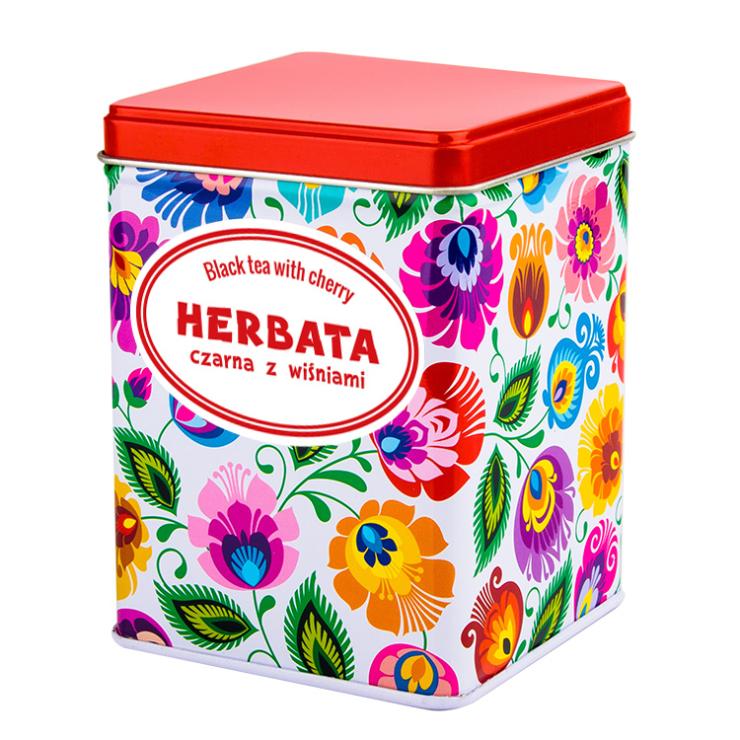 Black tea with cherries will delight you with its excellent taste and wonderful scent emerging from the cup right after brewing. Packed in a tin decorated with Lowicz motifs, it will add charm to your kitchen cabinet :)