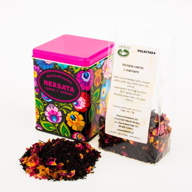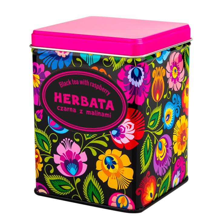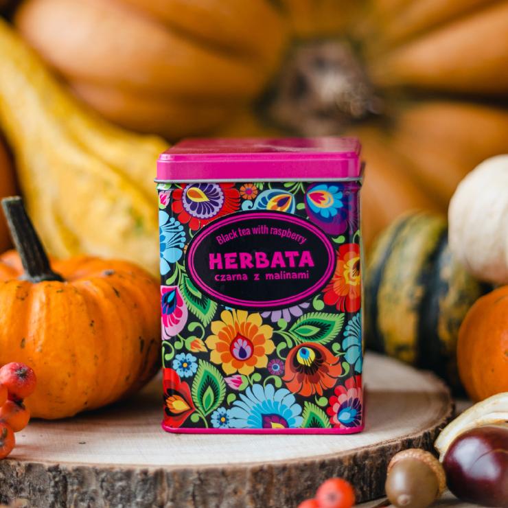 Black tea with raspberries will delight you with its excellent taste and wonderful scent emerging from the cup right after brewing. Packed in a tin decorated with Lowicz motifs, it will add charm to your kitchen cabinet :)