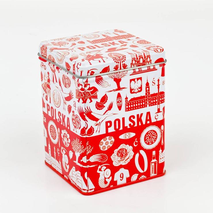 - The can is decorated with symbols characteristic of Poland