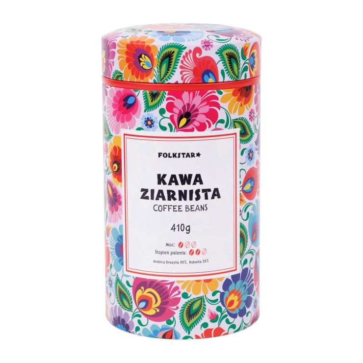 Coffee beans in a can - white Lowicz pattern will give you energy for the whole day and provide a nice kick whenever you feel weak. It will be perfect for any occasion - from a lazy morning to a family meeting at the table. And the Lowicz pattern can in which it is packed will become a beautiful decoration of your kitchen!