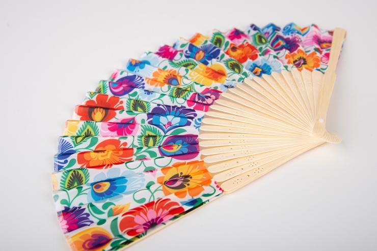 We are in a hurry to help! The fan - white Lowicz pattern, decorated with the most beautiful folk pattern - flowers from Lowicz cut-outs, will be perfect for holidays, in a crowded city or in a home garden. Everywhere you can only dream of air conditioning.