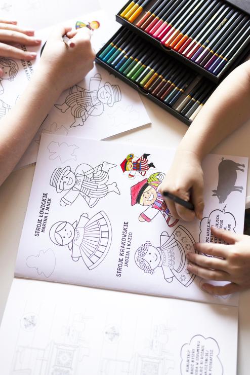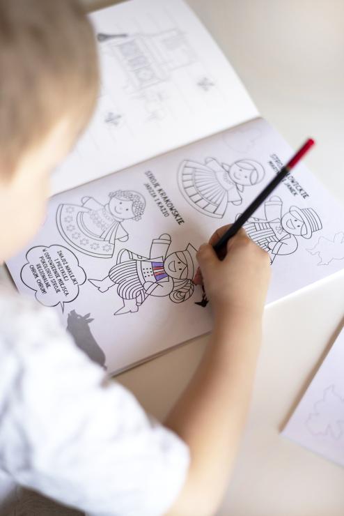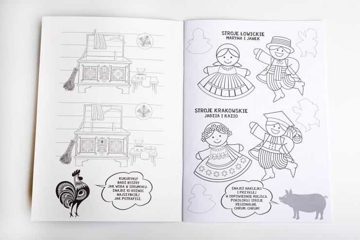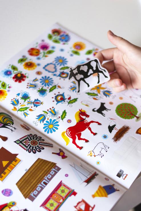 By coloring pictures from Folk colouring book with stickers, children will learn about motifs from Lowicz papercuts, Kashubian embroidery and highlander's palinice. They discover the beauty of traditional folk costumes and learn about the animals and objects that surrounded themselves with the ancient inhabitants of Kashubia, Lowicz, Podhale and Krakow. The folklore game also has clever puzzles that invite you to play with your parents and older siblings.