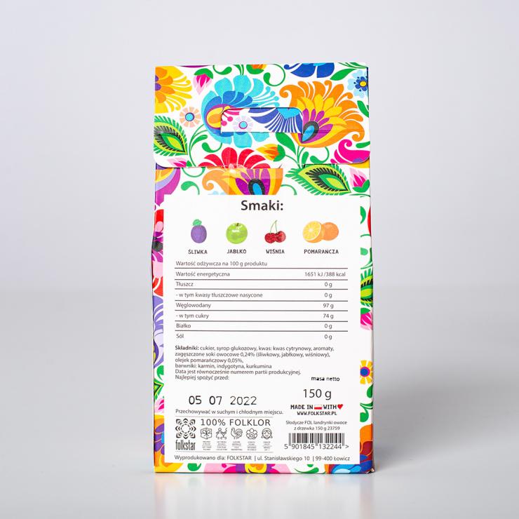 Fruit candies from the tree are four candy flavors in one box. Perfect for small and large gourmands, always at hand when we feel like something sweet. They are packed in a box with a Lowicz pattern, they will also be perfect for a gift :)