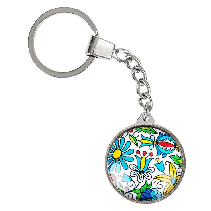 The pattern on the pendant is inspired by traditional folk patterns from Kashubian embroidery. The leitmotif of Kashubian flower patterns are: carnations, pansies, clovers, cornflowers, forget-me-nots, bells, lilies and roses.