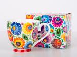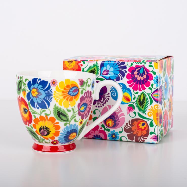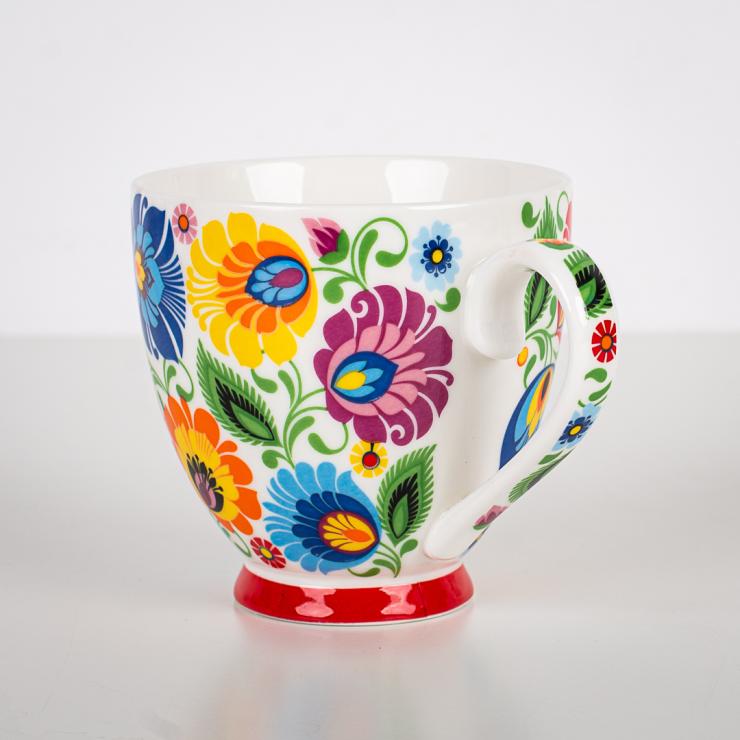 'Grażynka' mug in a decorative box 350 ml - white Lowicz pattern: