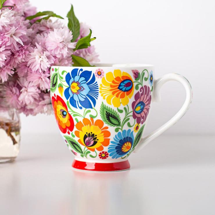 The 'Grażynka' mug in a decorative box - white Lowicz pattern is an ideal option for people who like to drink a lot of coffee or tea. An elegant mug will accompany you during a coffee break or during meetings with the closest person :)