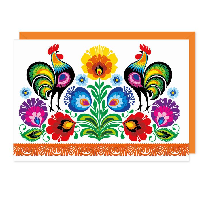 Greeting card + envelope | FOLK KOGUTY - kodra Łowicz