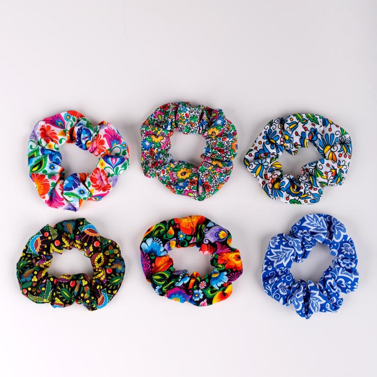 A hair tie with Opole pattern - a must-have in the makeup bag of every folk fan with long hair ;) A folk scrunchie is a small accessory that will add character to your hairstyle. The material it is made of (100% cotton) ensures that the elastic bands stick well to the hair and do not damage it.