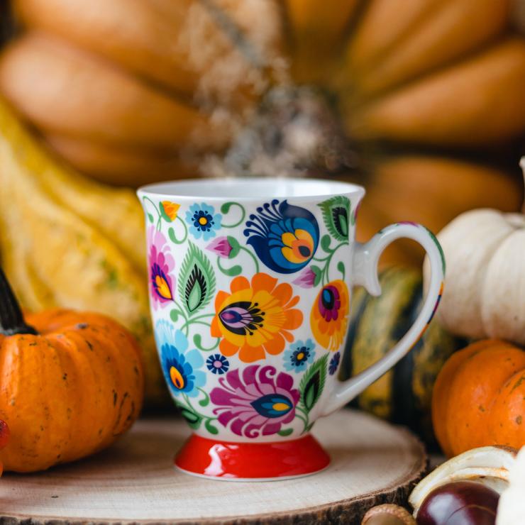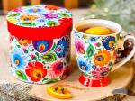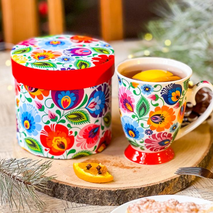 The 'Helenka' mug in a box is another of our ready-made gift ideas. Thanks to its original shape and beautiful gift packaging, it will be perfect as a gift for many occasions. The fanciful patterns on the mug will make it add color to your kitchen and become a favorite companion for coffee meetings and evenings with your favorite tea.