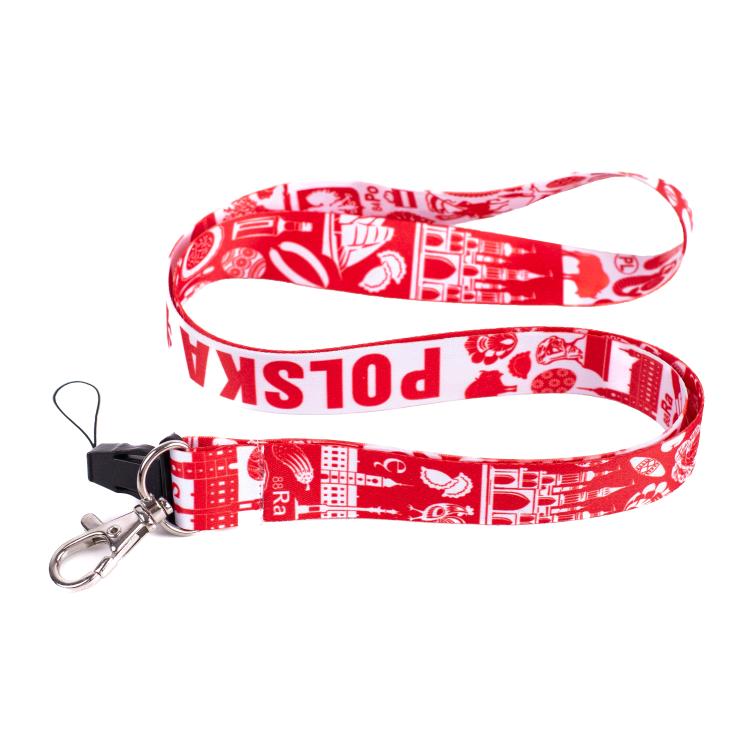 Polish symbols that can be found on the lanyard: Lajkonik, Sausage, Royal Castle in Warsaw, Cracow Nativity Scene, Faworki, Dumplings, Oscypek, Cabbage for bigos, Car "Maluch", Cake "Wuzetka", Stork, Polish vodka, Tomato soup, Masovian Willow, Husaria, Polish zloty