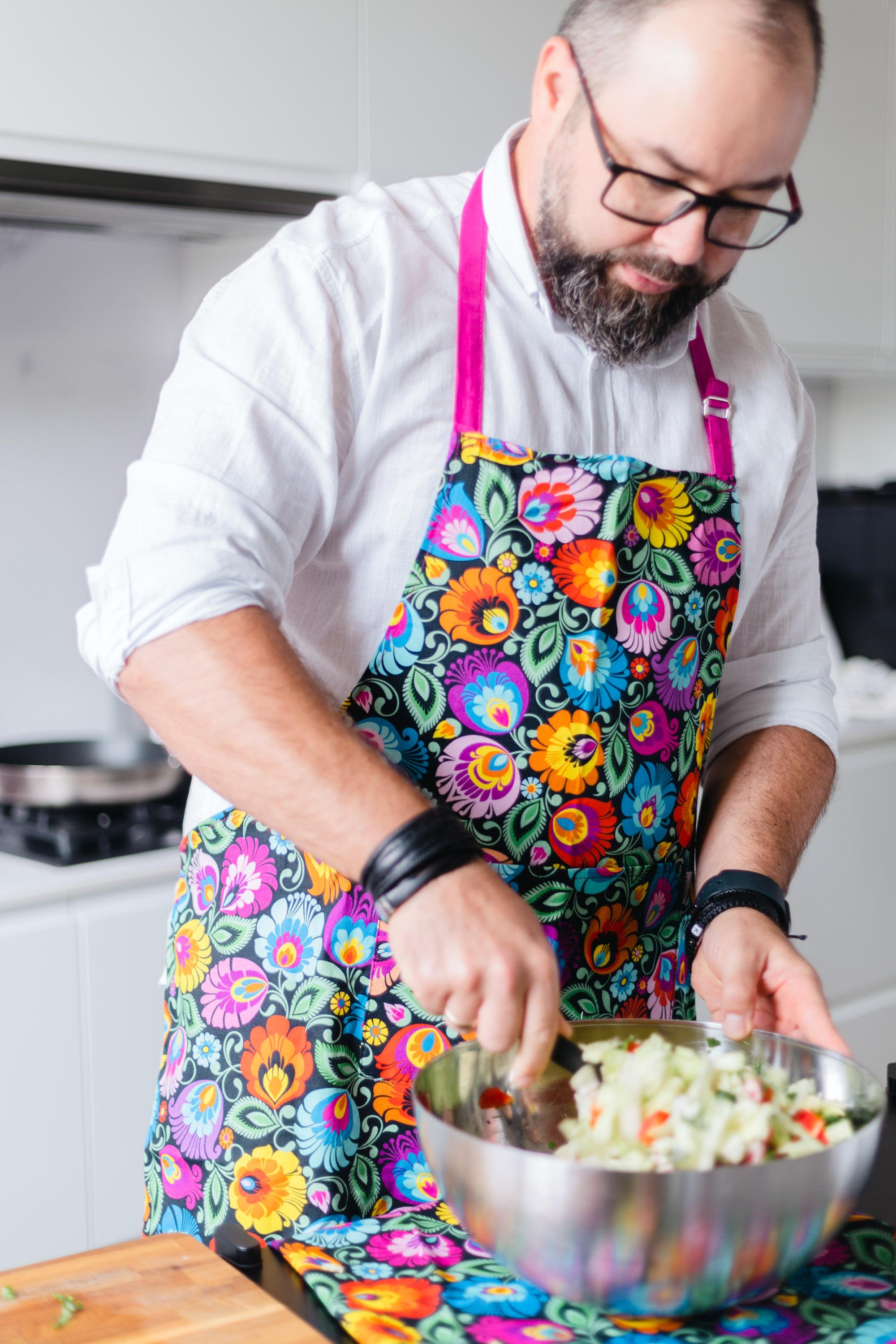 A kitchen apron is a basic element of every housewife who cooks for her family. Preparing dinner will become much more enjoyable, and at the same time it will be beautifully presented! Every woman likes to look good, even during home chores, and with our apron in the kitchen you will always look elegant! ;)