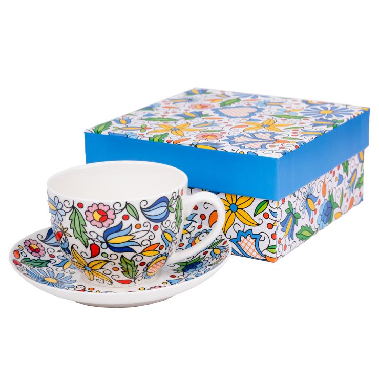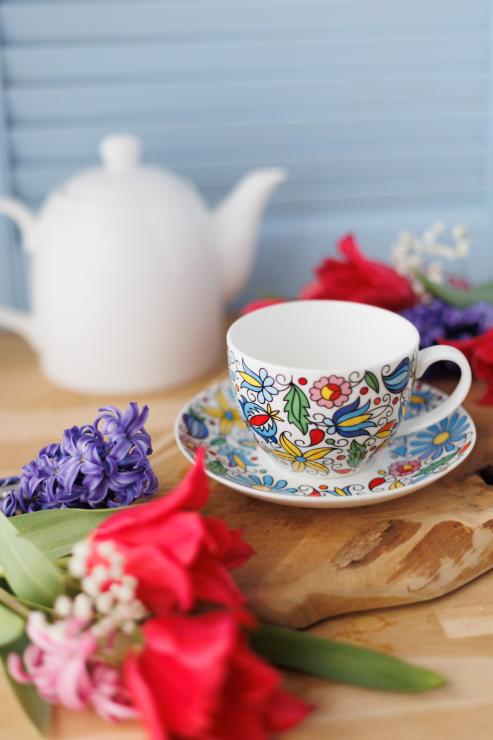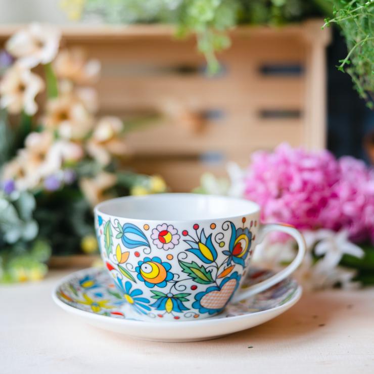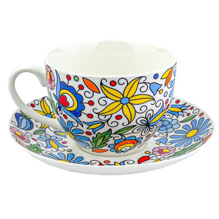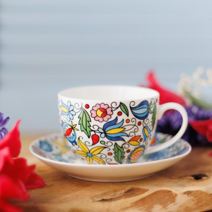 - The Kashubian pattern is on the entire surface of the cup and on top of the saucer