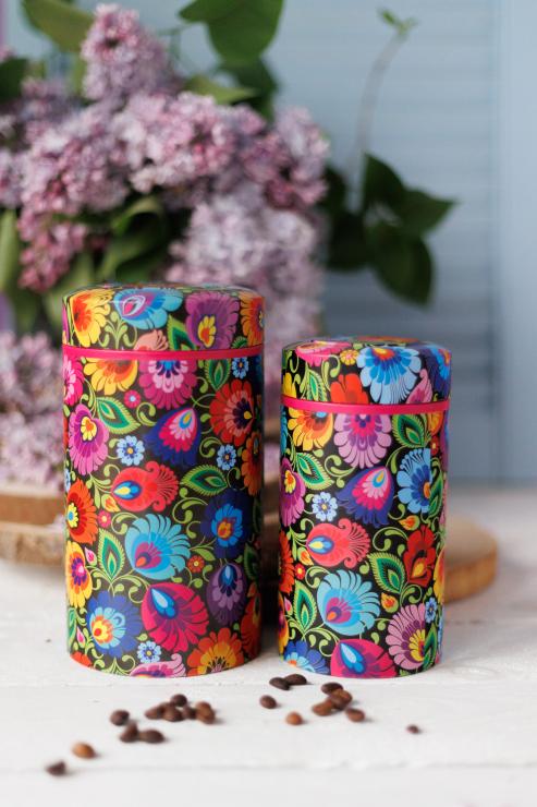 The cans are decorated with a Lowicz pattern and have a matte finish, so the cans will look great on the kitchen shelf and will add some color to the interior. Folk cans also have an additional plug inside, which allows the food to smell longer.