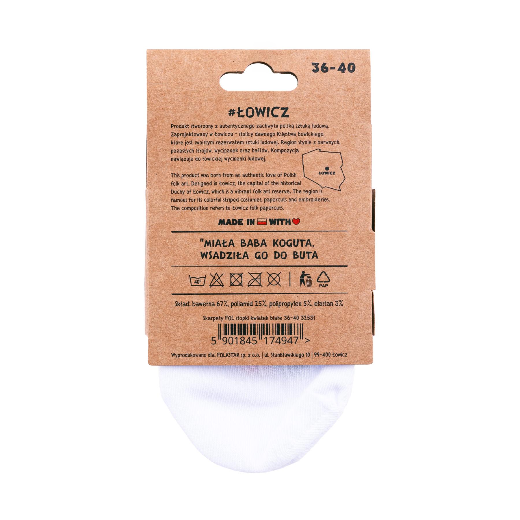Łowicz Flower Ankle Socks - White: