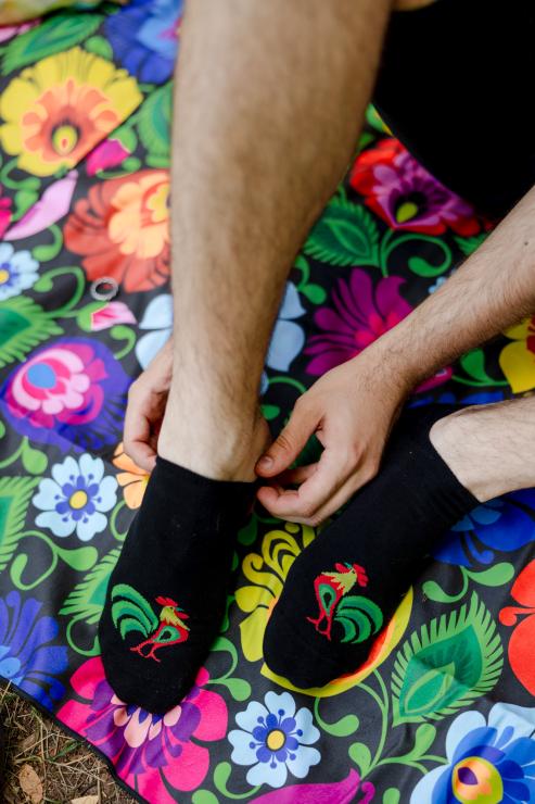 Imagine a morning in the countryside, a rooster singing, and the smell of fresh bread. These socks capture that very atmosphere – encapsulated in soft, colorful fabric. Designed with love for Polish tradition, they're made for those who want to wear a touch of folklore and good humor every day.