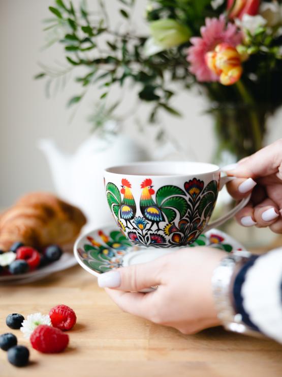 The Małgosia Cup - Roosters of Łowicz is a combination of elegance and comfort with a touch of folk that adds character. It makes any tea taste like gold, and drinking your morning coffee becomes even more enjoyable. The Małgosia cup is a perfect gift for any gourmet drink lover, elegance enthusiast, folk enthusiast… well, for everyone :)