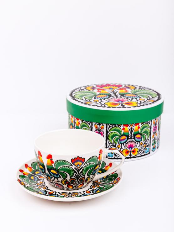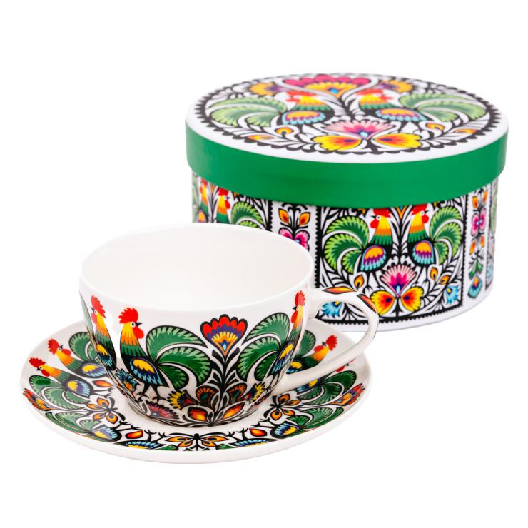 Małgosia Tea Cup in a Box, 300ml, with a Łowicz Rooster Pattern