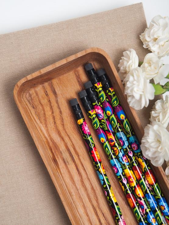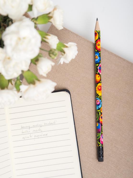 A black pencil decorated with flowers from Łowicz is the perfect gift for your child :) The pattern is inspired by the most popular folk cut-outs - Łowicz, which will make everyone in the class rearing up. Not only in the classroom, but also at your workplace. Perfect pencil for everyone :)