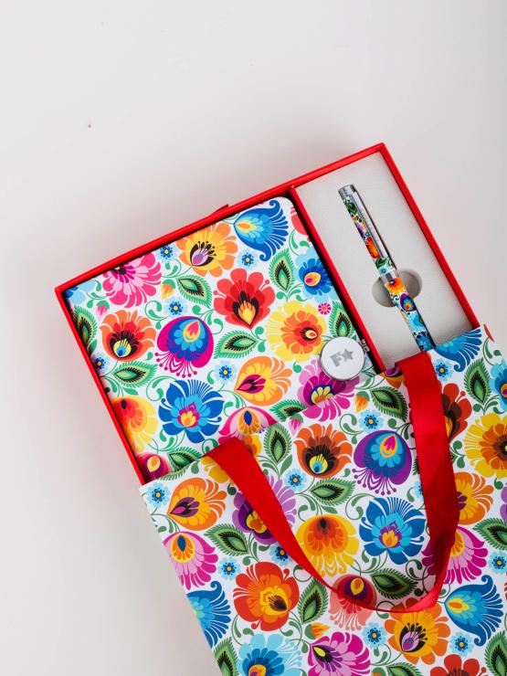 Set "Stylish notes" in a bag - łowicki biały is a combination of elegance and functionality, it will work well both in the office and in everyday use.