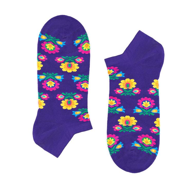 Short socks with a floral pattern - purple: