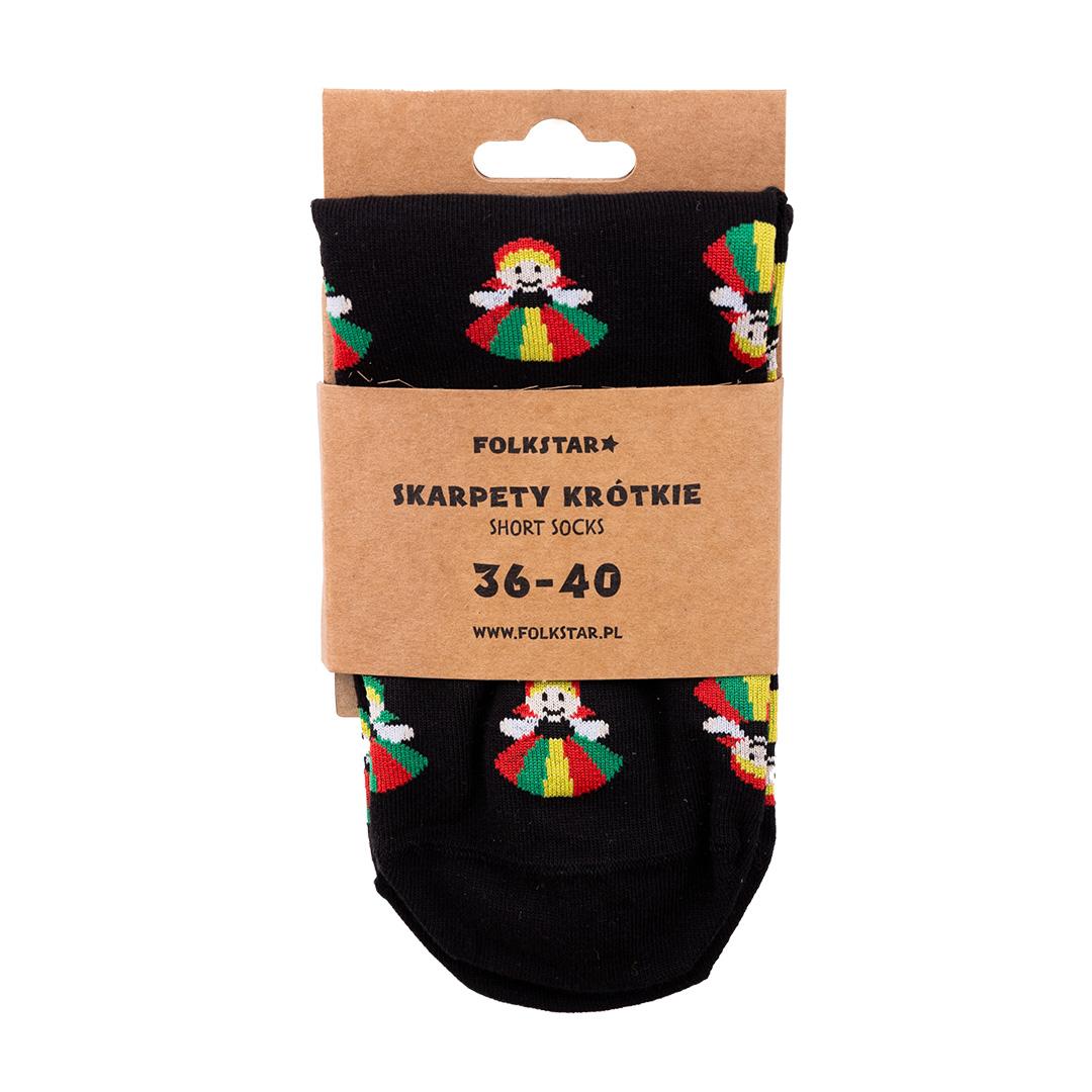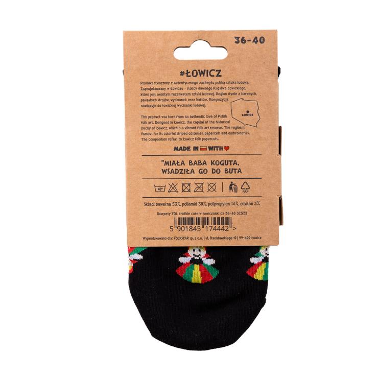 Short socks with a Łowiczanki pattern - black