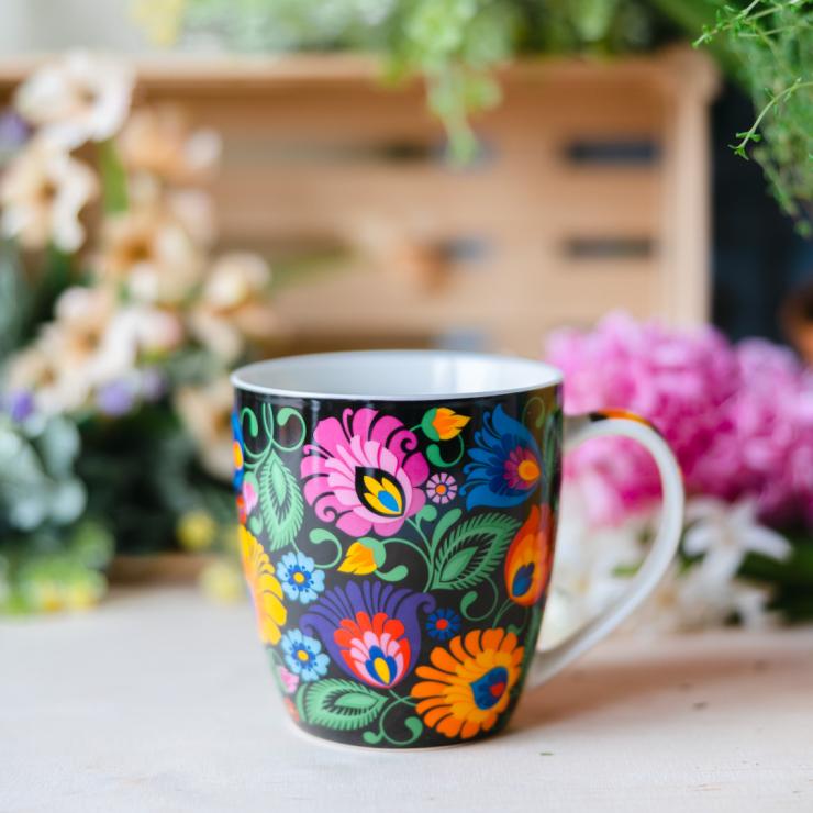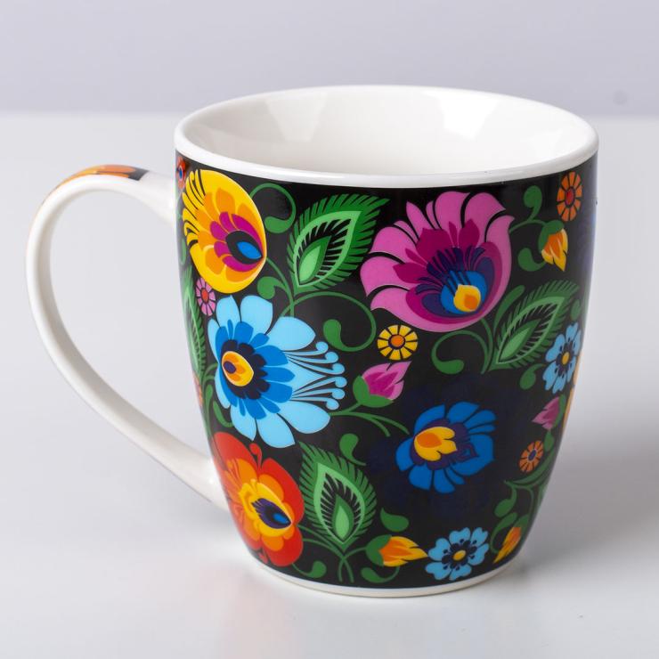'Stefania' mug in a decorative box 460 ml - black Lowicz pattern: