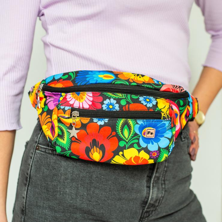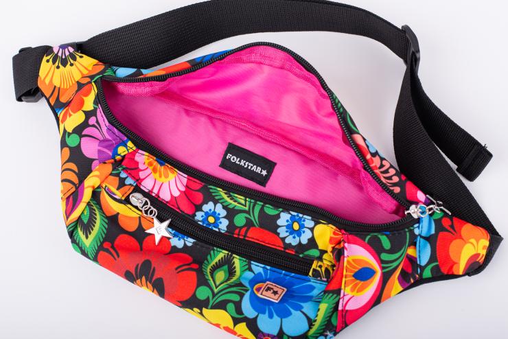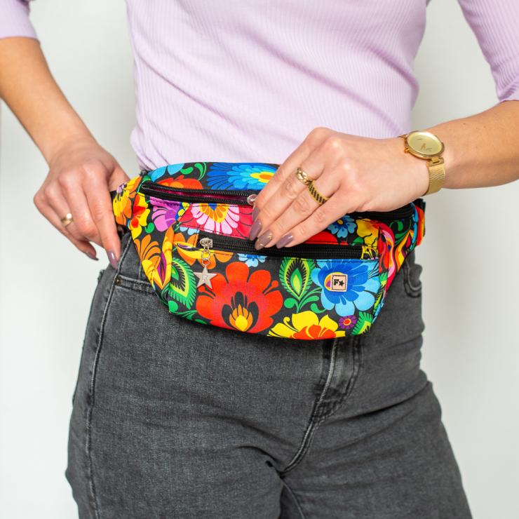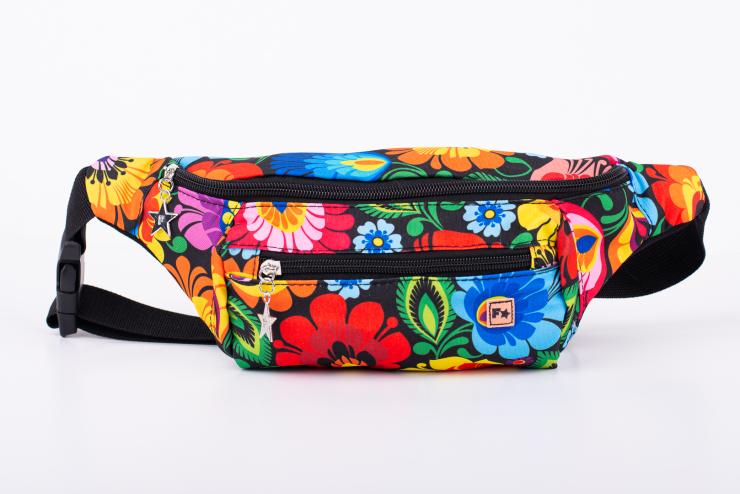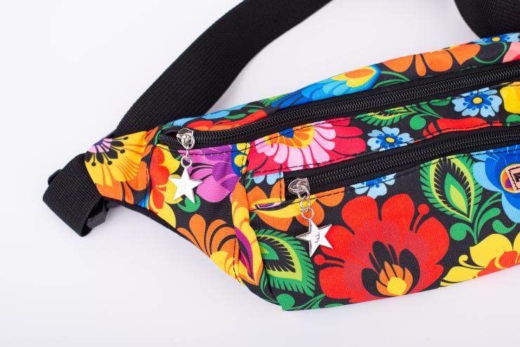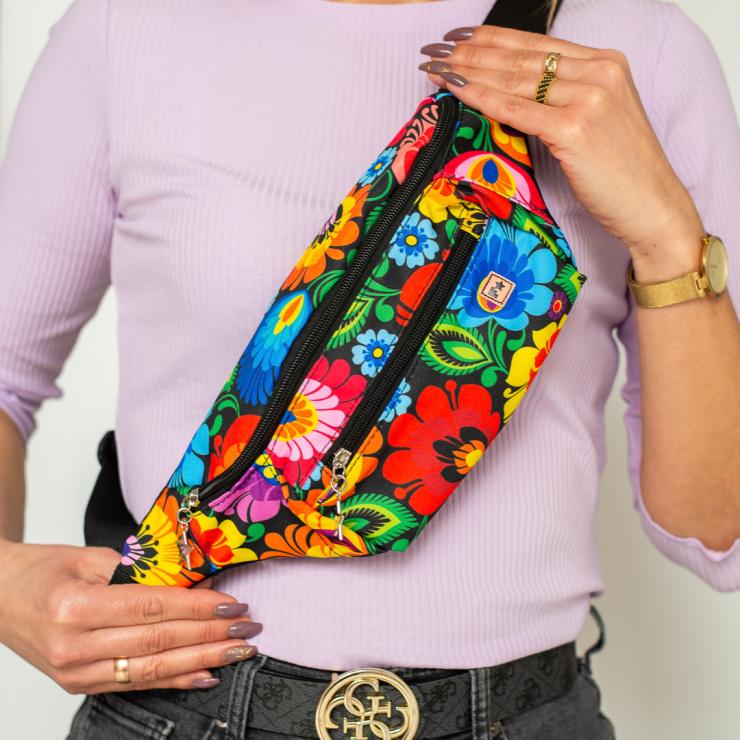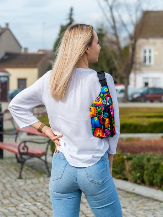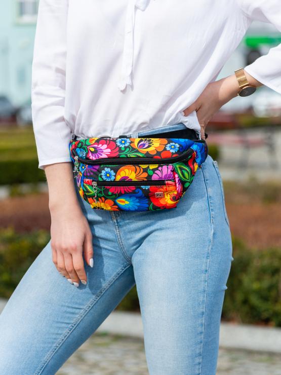 Women's kidney bag - black Lowicz pattern