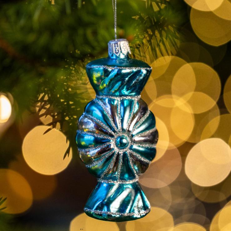 Bombka retro cukierek - turkusowo-srebrny