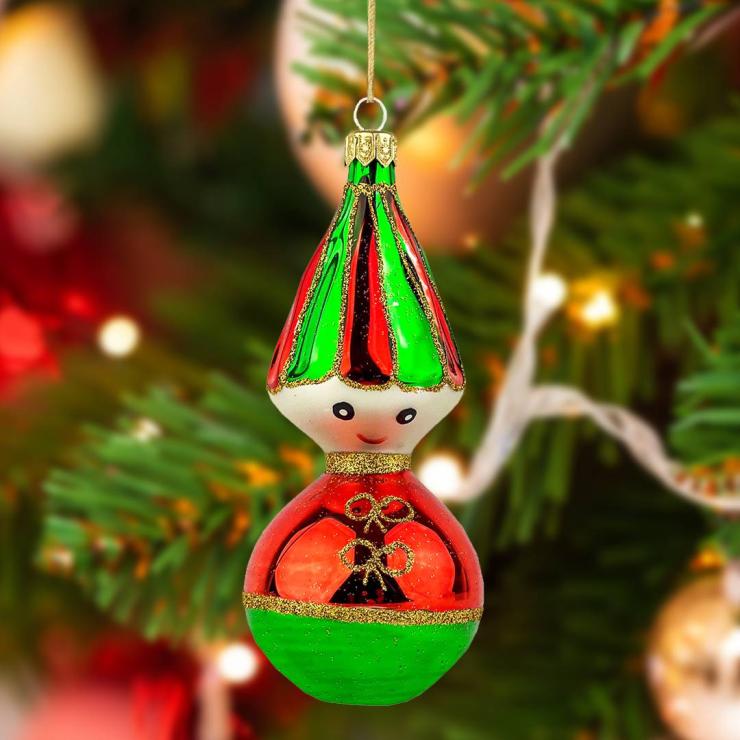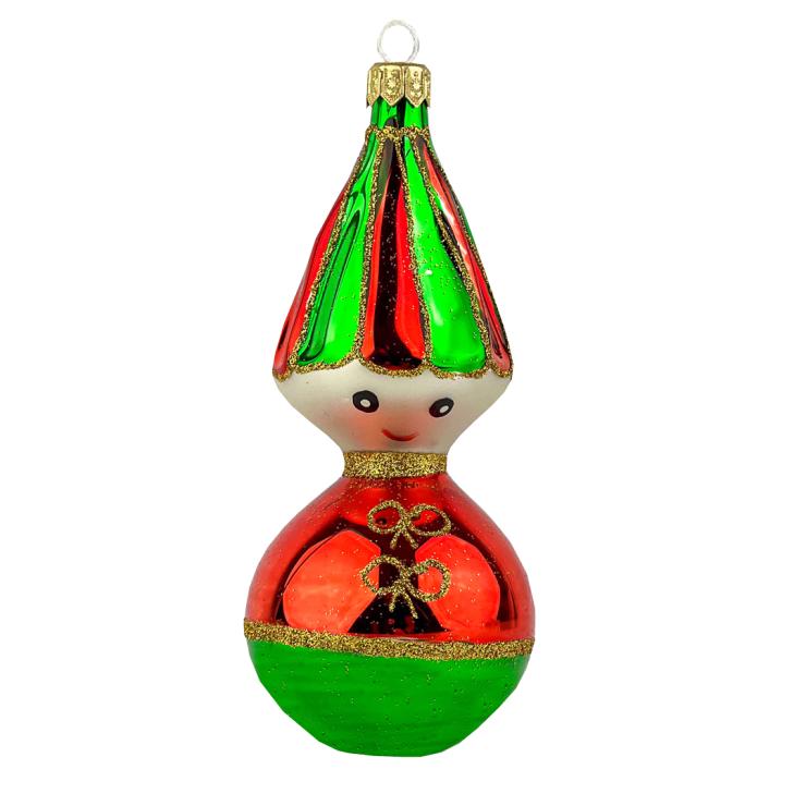 Bombka retro Pajac - zielono-czerwona to jedna z tych ozdób bożonarodzeniowych, która nieodłącznie kojarzy się nam z choinkami czasów PRL. Obecnie design ten przeżywa swój renesans i z powodzeniem gości w naszych domach. Bombka retro Pajac - zielono-czerwona to sposób by na jednej choince połączyć ze sobą jeden z obecnie najpopularniejszych trendów, jak i przywołać czar choinek z dawnych lat.