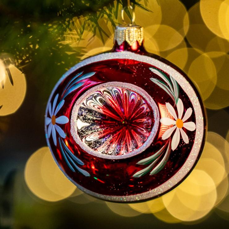 Bombka retro - reflektor 8 cm czerwony to wyjątkowa ozdoba, która przenosi w czasie do lat, kiedy Święta miały prosty, a zarazem magiczny charakter. Każda bombka wykonana jest z niezwykłą starannością, zainspirowana wzorami, które zdobiły choinki w domach naszych rodziców i dziadków. Ich klasyczne kolory, połyskliwe szkło i subtelne zdobienia sprawiają, że choinka nabiera niepowtarzalnego uroku. To nie tylko dekoracje – to przedmioty, które wywołują wzruszenie, przywołują wspomnienia dzieciństwa i pozwalają stworzyć w domu prawdziwie świąteczną atmosferę.