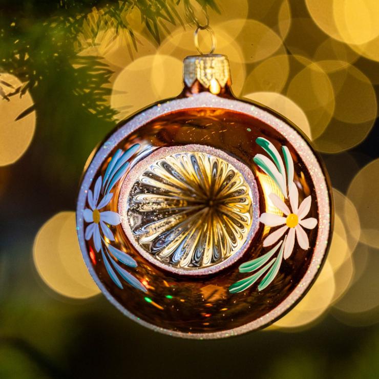 Bombka retro - reflektor 8 cm pomarańczowy to wyjątkowa ozdoba, która przenosi w czasie do lat, kiedy Święta miały prosty, a zarazem magiczny charakter. Każda bombka wykonana jest z niezwykłą starannością, zainspirowana wzorami, które zdobiły choinki w domach naszych rodziców i dziadków. Ich klasyczne kolory, połyskliwe szkło i subtelne zdobienia sprawiają, że choinka nabiera niepowtarzalnego uroku. To nie tylko dekoracje – to przedmioty, które wywołują wzruszenie, przywołują wspomnienia dzieciństwa i pozwalają stworzyć w domu prawdziwie świąteczną atmosferę.
