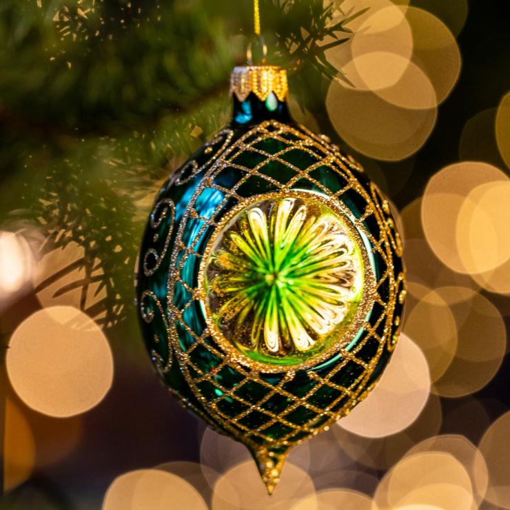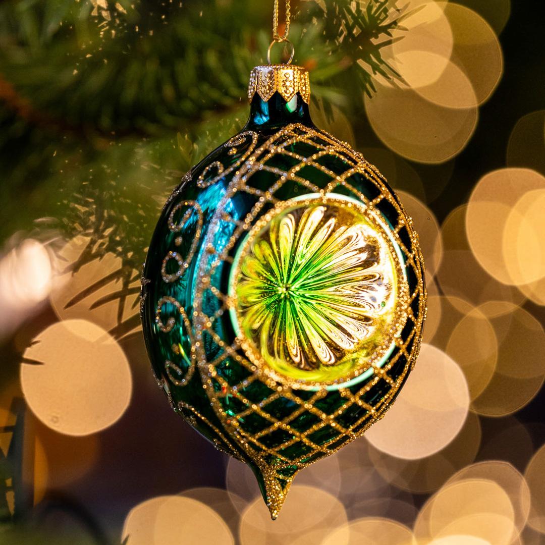 Ta bombka to niczym kapsuła czasu, która przenosi nas do lat, gdy święta były pełne radości i blasku tradycyjnych ozdób. Szklana, ręcznie malowana, przywołuje zapach igliwia, dźwięk śmiechu i te niekończące się chwile spędzone z rodziną przy wspólnym ubieraniu choinki.