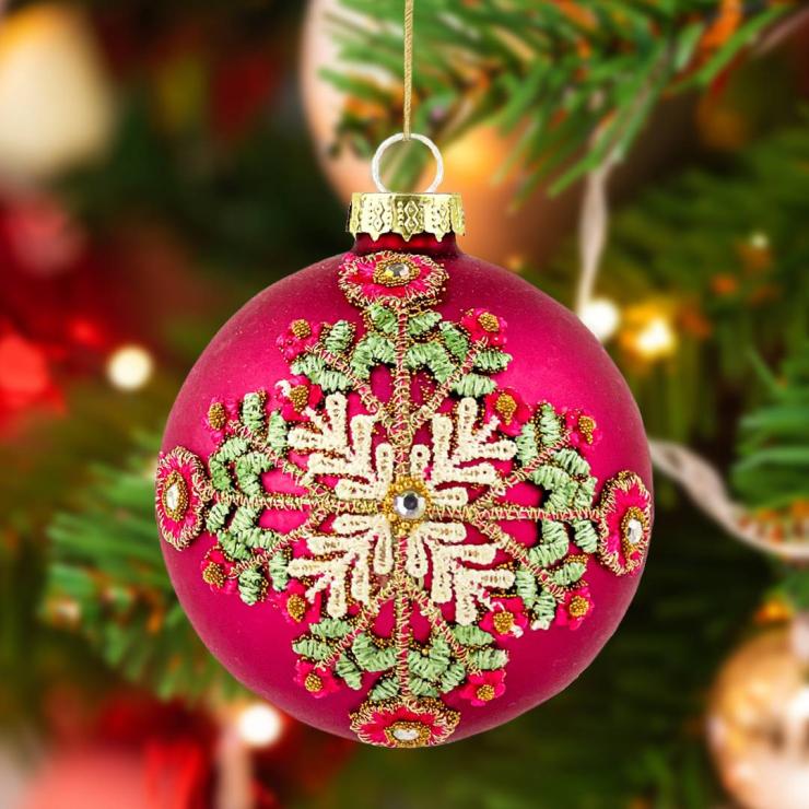 Bombka Rozeta matowa - fuksja będzie idealną ozdobą Twojej choinki, a na dodatek doda jej wyjątkowego uroku. Dzięki swoim bogatym zdobieniom, odrazu wpada w oko i z pewnością zachwyci Twojego niejednego gościa :)