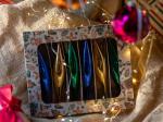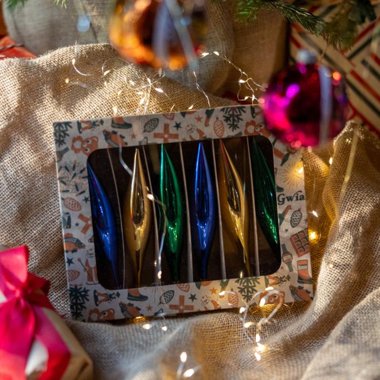 Bombki retro sople niebieski-złoty-zieleń - komplet 6 sztuk: