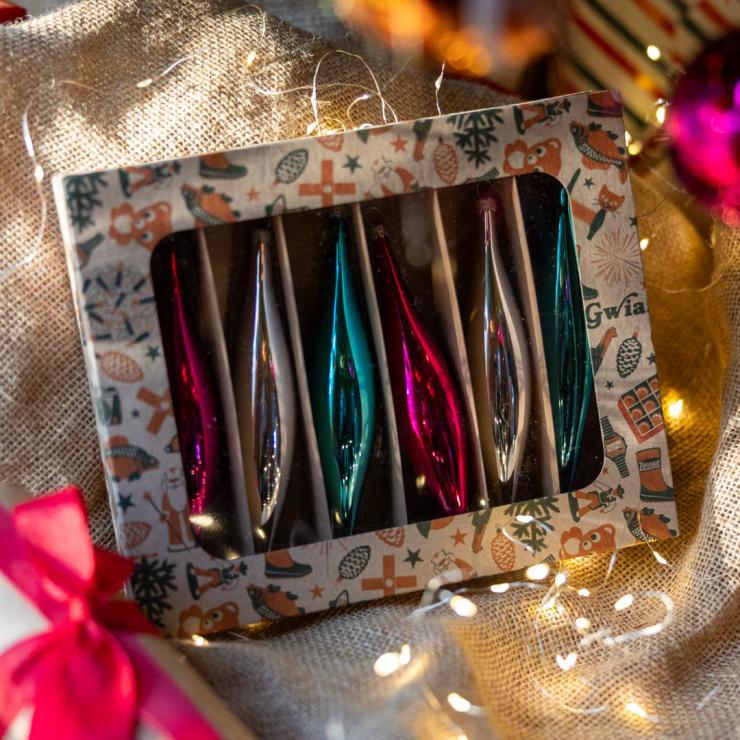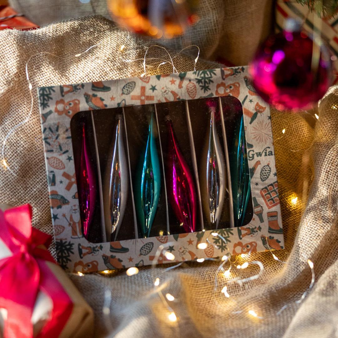 Bombki retro sople zestaw 6 sztuk to jak powrót do świąt z dzieciństwa, kiedy choinki mieniły się kolorami, a każdy z nas miał swoją ulubioną ozdobę. Pamiętasz te chwile, gdy z radością wieszałeś bombki na gałązkach, a choinka stawała się prawdziwym symbolem świątecznej magii? Zestaw bombek retro przypomina tamte lata, gdy święta były pełne prostoty i rodzinnej bliskości. Dziś ten uroczy wzór znów wraca do łask, łącząc dawny czar z nowoczesnym stylem. To nie tylko dekoracja, ale i wspomnienie choinek z czasów, które budzą w nas ciepło i nostalgię