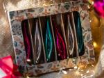 Bombki retro sople turkus-srebrny-róż - komplet 6 sztuk:
