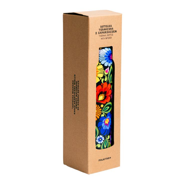 Butelka termiczna Lucynka 1litr z zaparzaczem - łowicka czarna