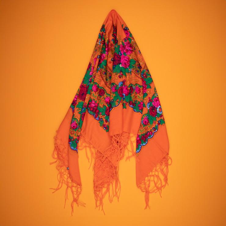 Chusta ludowa 110x110cm - pomarańczowa