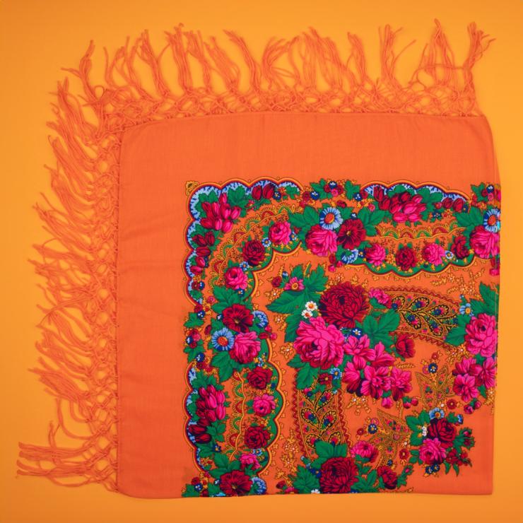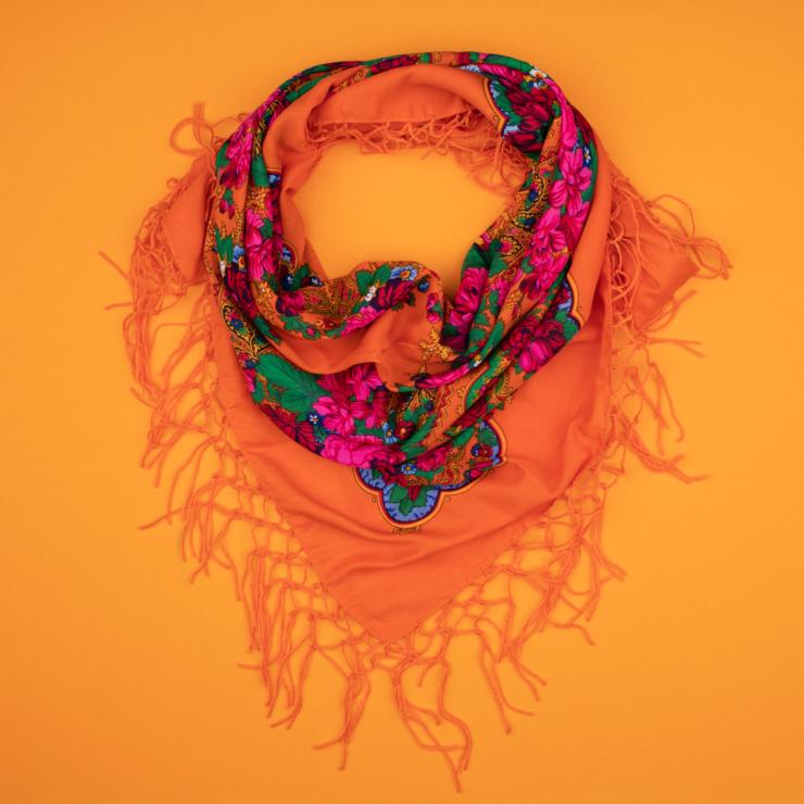 Chusta ludowa 110x110 cm - pomarańczowa