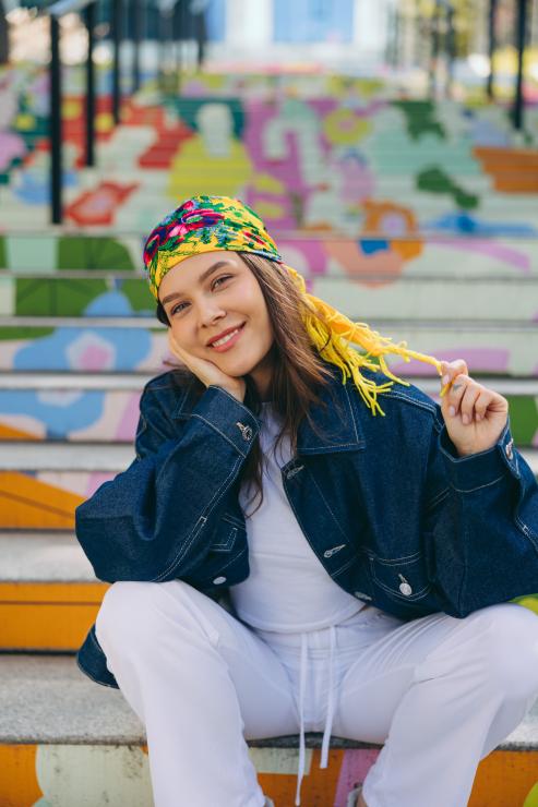 - szerokie zastosowanie: jako chusta na głowę, na szyję, narzucona na siebie, jako opaska
