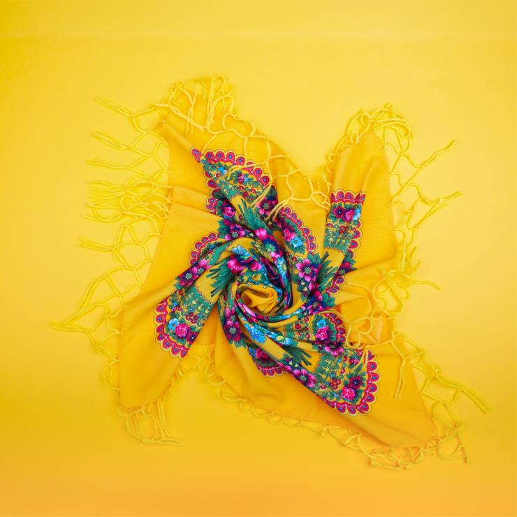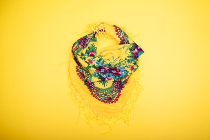 - szerokie zastosowanie: jako chusta na głowę, na szyję, narzucona na siebie, jako opaska