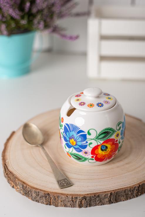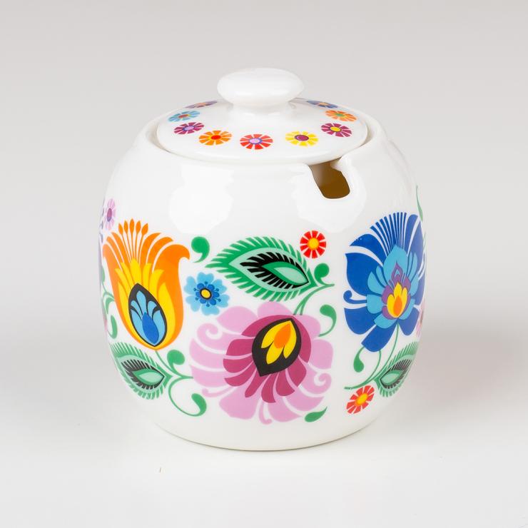 - Wzór łowicki naniesiony dookoła cukierniczki