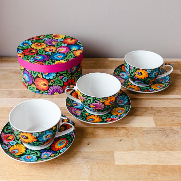Filiżanka Małgosia 2+1 - łowicka czarna: