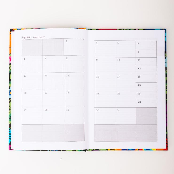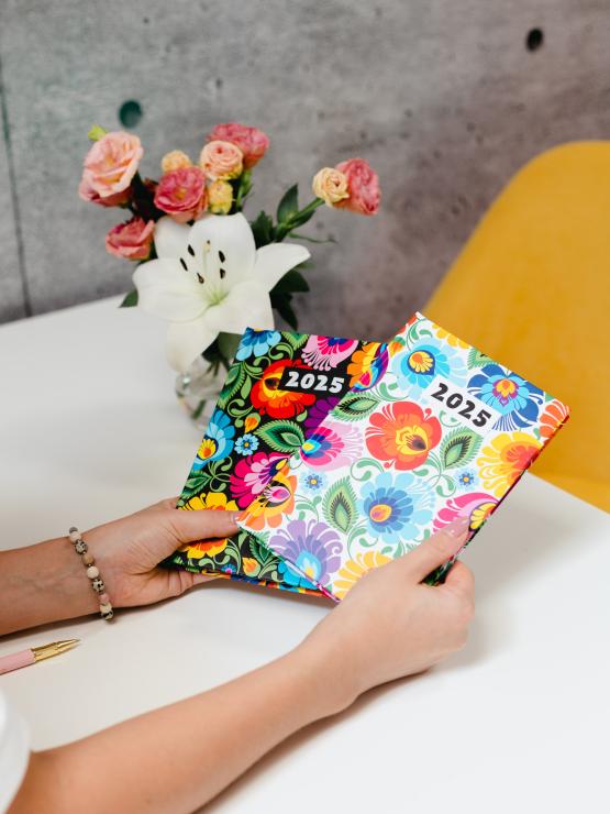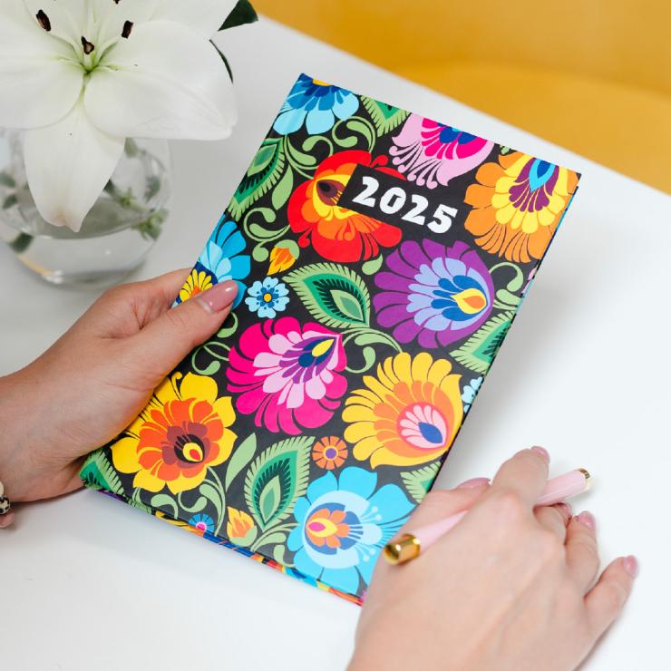 Wizyta u kosmetyczki, wywiadówka w szkole, czy wizyta u lekarza? Z kalendarzem tygodniowym zawsze będziesz o wszytskim pamiętać. Stylizowany na ludowo kalendarz zachwyca intensywną gamą kolorów i sprawia, że każdy dzień, nawet ten pełen spotkań i planów na ostatnią chwilę, staje się lepszy. Kalendarz tygodniowy 2025 łowicki czarny sprawdzi się zarówno na domowe zapiski jak i biznesowe spotkanie.