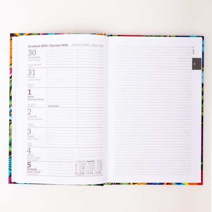 - cały tydzień na jednej stronie – na stronie obok miejsce na notatki