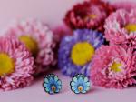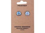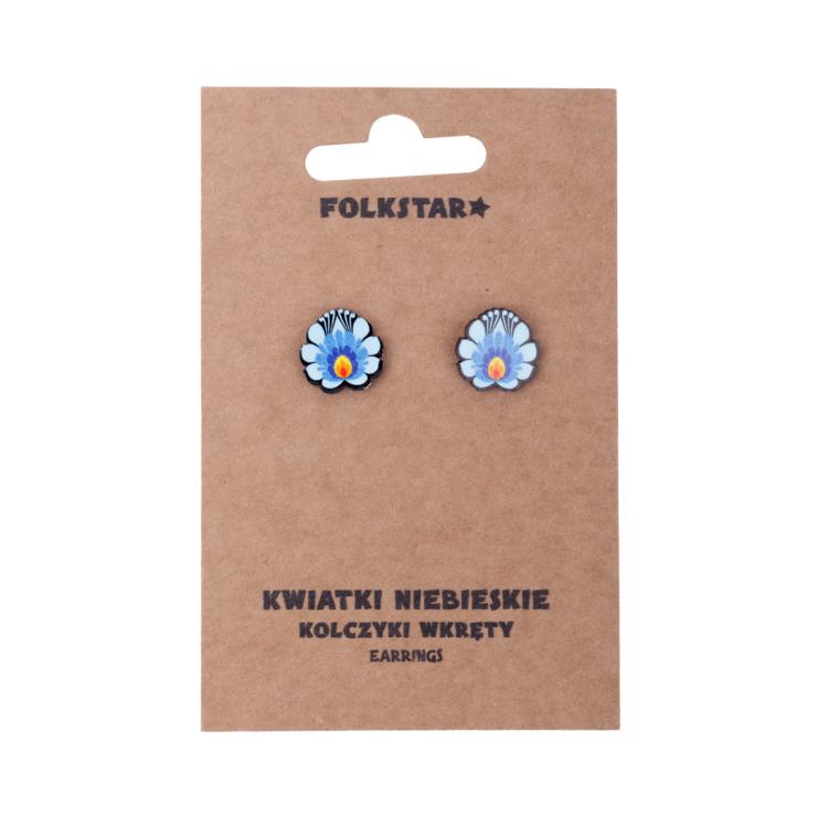 Kolczyki drewniane wkręty - niebieskie kwiaty łowickie
