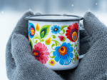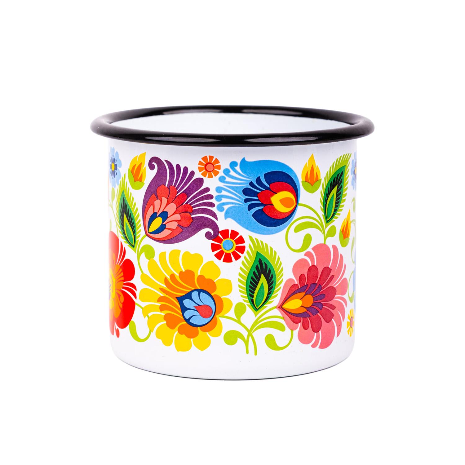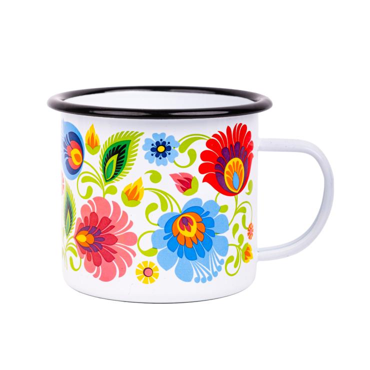 Kubek emaliowany Janek 500ml - łowicki biały: