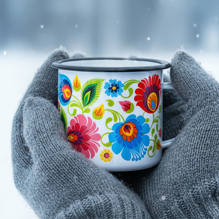 Kubek emaliowany Janek - łowicki biały to rodzaj kubka, który każdy zna. To kubek, z którego piło się kakao po powrocie z podwórka, herbata parowała w nim podczas długich zim, a latem wypełniał się kompotem z owoców prosto z sadu.